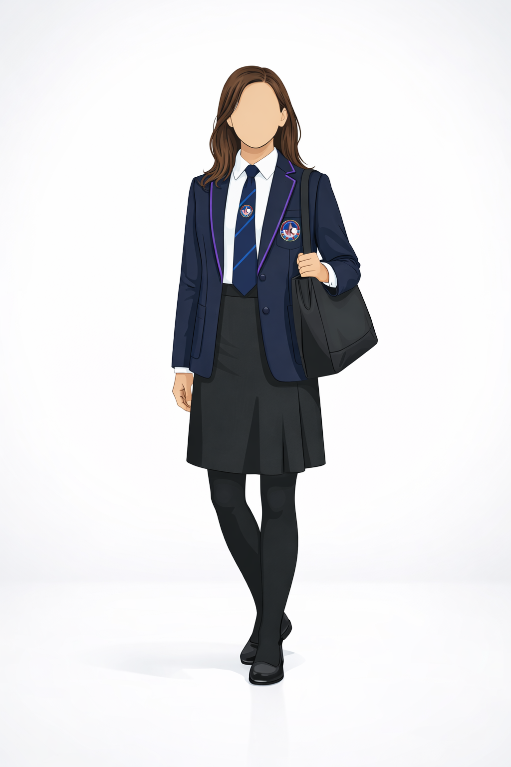 - Black skirt (length should sit just above the knee and should not be stretchy material)